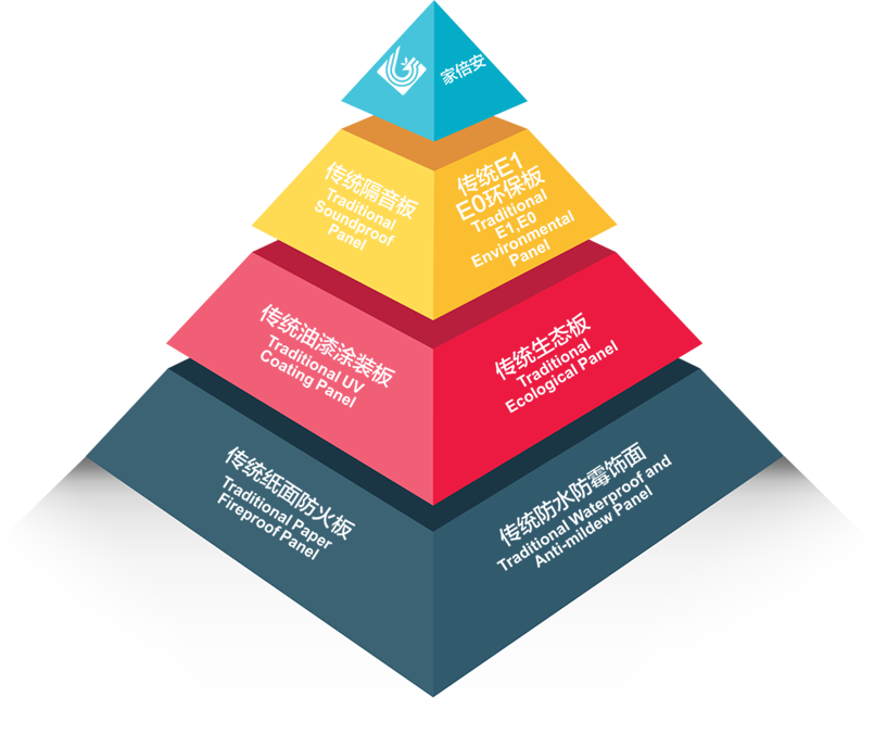 • “家倍安”使用高阻隔金屬鋁箔和高滲、超耐磨納米材料,經(jīng)過高溫高壓獨特的工藝方法處理,飾面木質(zhì)纖維結(jié)構(gòu)更加縝密,隔音、降噪,導(dǎo)熱系數(shù)低,防火等級高,達(dá)到國家防火材料防火標(biāo)準(zhǔn)A2級。